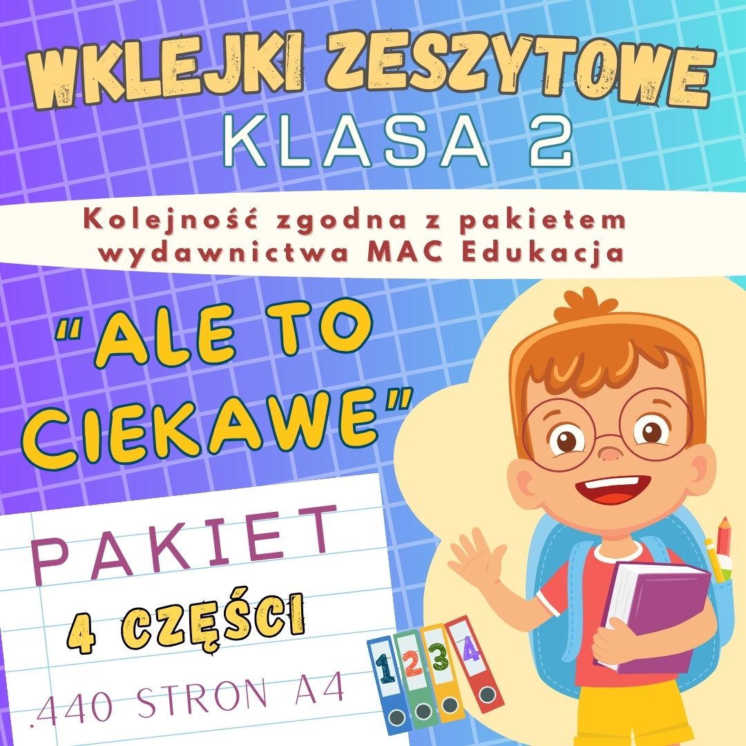 PAKIET autorskich wklejek zeszytowych dostosowanych do wydawnictwa Mac – „ALE TO CIEKAWE” – 4 części na cały rok szkolny (klasa 2)