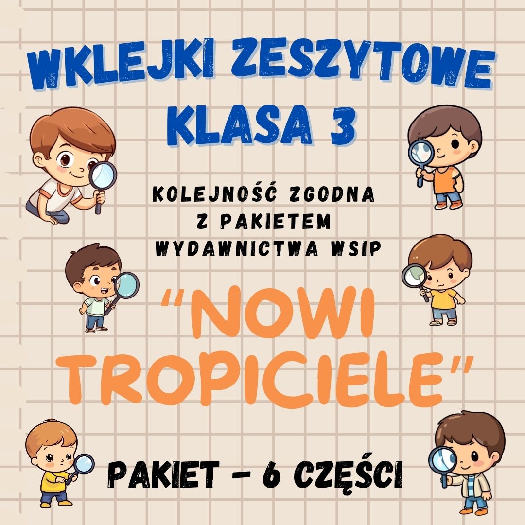 PAKIET wklejek do klasy 3 | 6 Części | 497 Stron A4 | Nowi Tropiciele