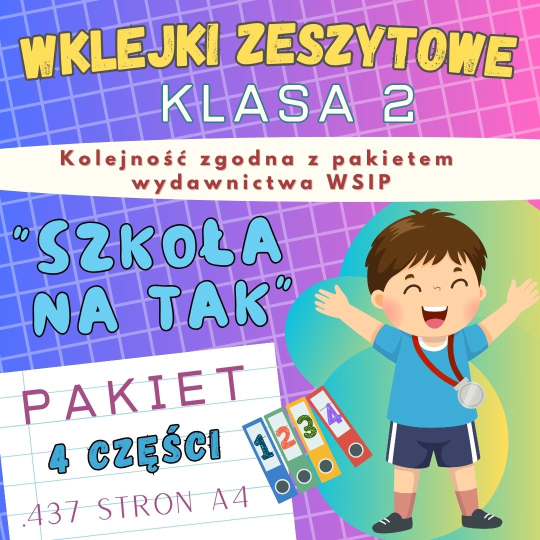 PAKIET autorskich wklejek zeszytowych dostosowanych do wydawnictwa WSIP – „Szkoła na tak” – 4 części na cały rok szkolny (klasa 2)