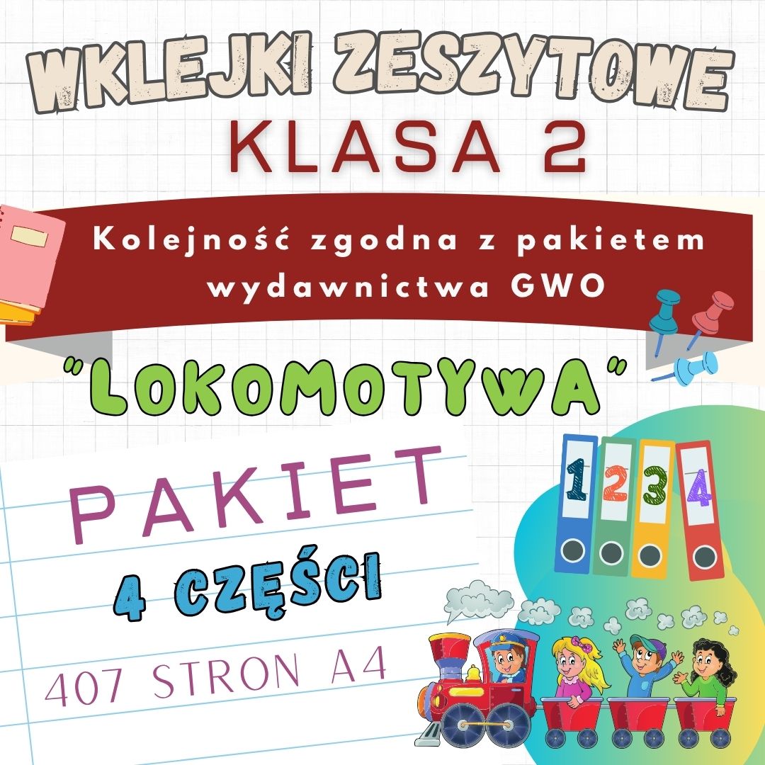 PAKIET autorskich wklejek zeszytowych dostosowanych do wydawnictwa GWO – „Lokomotywa” – 4 części na cały rok szkolny (klasa 2)