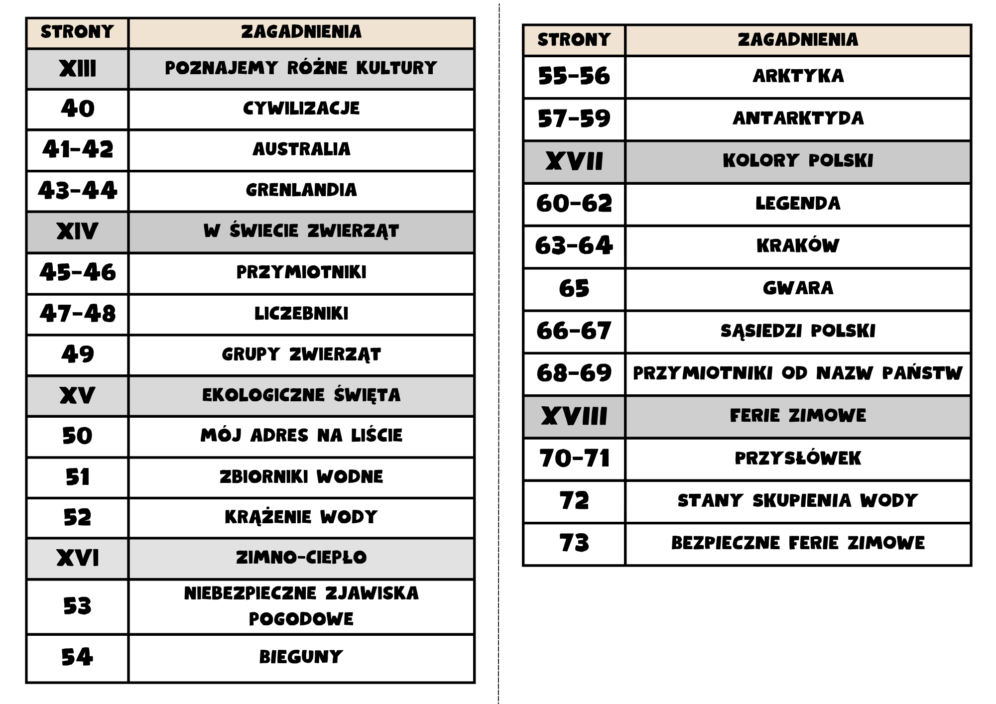 Pierwsza część zawiera: