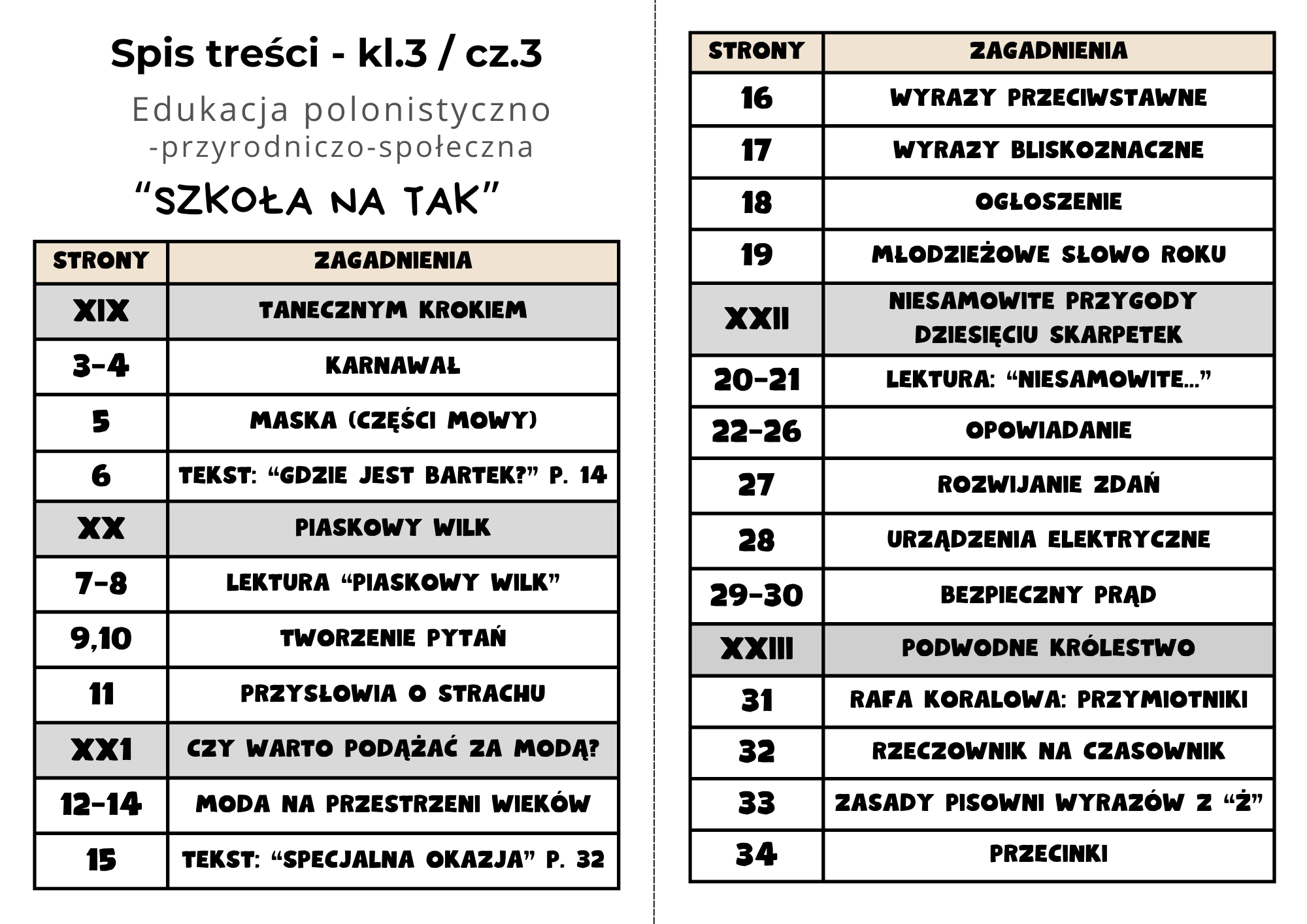 Szkoła Na Tak | Wklejki do klasy 3 | Część 3 | 94 strony A4 PDF